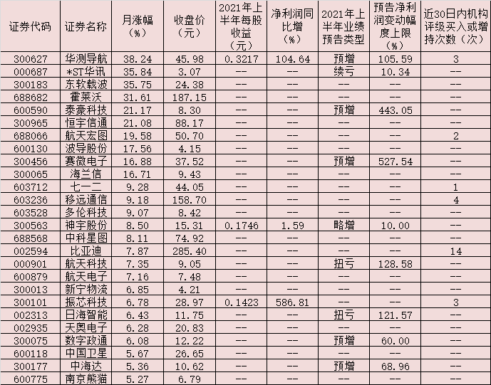 表:8月份以來漲幅超5%的北斗導(dǎo)航概念股一覽