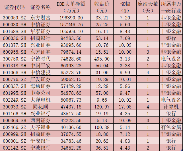 一、周三(8月18日)DDE大單資金凈買入TOP20