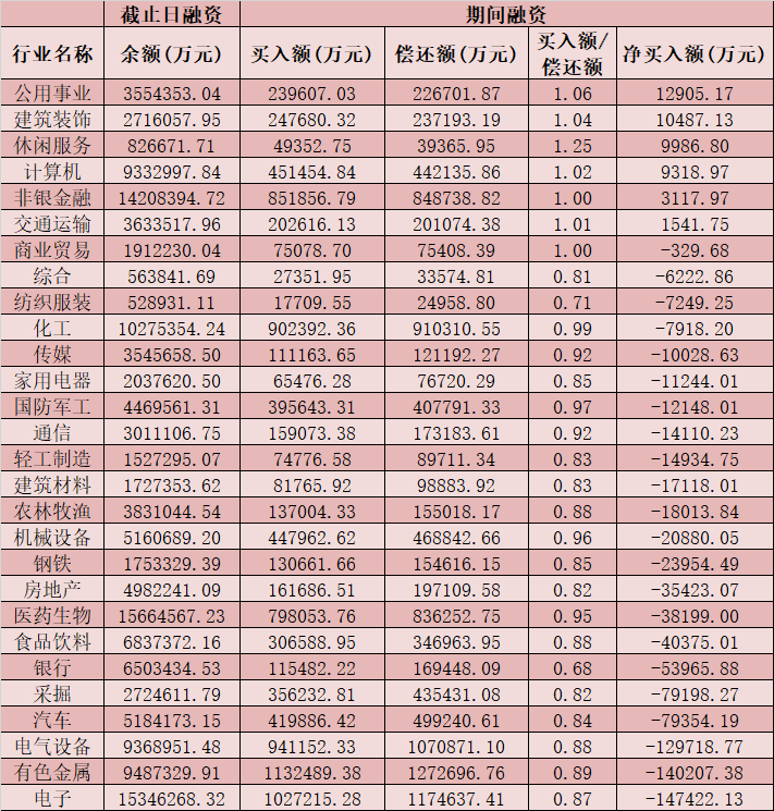 六、截至8月17日申萬(wàn)一級(jí)行業(yè)兩融交易情況