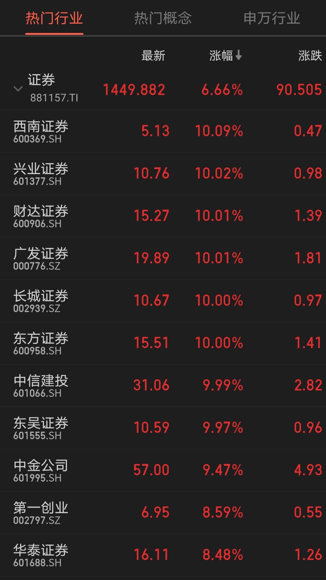8月18日,同花順證券板塊指數(shù)上漲6.66%,跑贏上證指數(shù)(漲幅1.11%)。具體到個(gè)股方面,西南證券、興業(yè)證券、財(cái)達(dá)證券、廣發(fā)證券、東方證券、長城證券、中信建投、東吳證券等8只個(gè)股聯(lián)袂漲停;此外,包括中金公司(9.47%)、第一創(chuàng)業(yè)(8.59%)、華泰證券(8.48%)等在內(nèi)的33只個(gè)股上漲幅度也均超過5%。