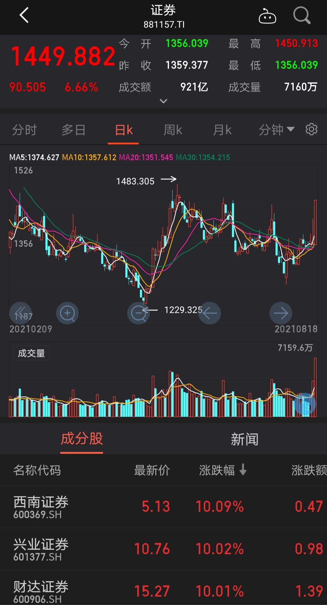 每日復(fù)盤:A股成交額連續(xù)第19個(gè)交易日突破1萬億元,家電行業(yè)領(lǐng)漲...2021-08-16 19:29
