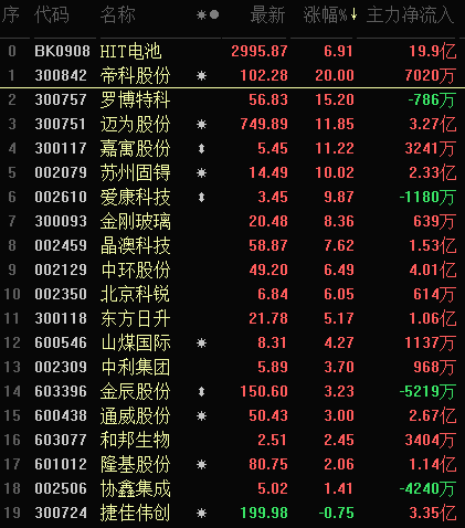 另外,HIT(HIT/HJT)電池板塊大漲,帝科股份獲20CM漲停,羅博特科、邁為股份、嘉寓股份等多股漲幅超10%。