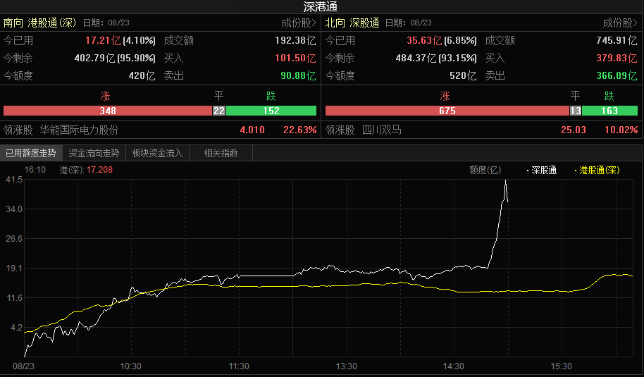 8月23日,A股三大指數(shù)持續(xù)拉升,集體漲超1%,創(chuàng)業(yè)板指表現(xiàn)最強,截至收盤,上證指數(shù)漲1.45%,深證成指漲1.98%,創(chuàng)業(yè)板指漲3.16%;滬深兩市合計成交額13225.60億元,兩市成交額連續(xù)24個交易日突破1萬億元;北向資金凈買入18.31億元;總體來看,兩市個股普漲,超3600只個股上漲。