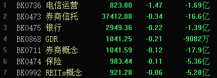 電信運營、券商、銀行、保險等板塊,是為數(shù)不多的下跌板塊。