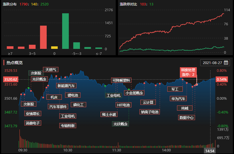 建泓時代投資總監(jiān)趙媛媛:個人預計下一次降準在11月份左右,未來一個月貨幣將維持中性,因此再次期間指數(shù)或維持區(qū)間震蕩狀態(tài)。在利率震蕩走低提升市場風險偏好,且聯(lián)儲taper預期強烈北向資金流入減緩的情況下,中小盤指數(shù)或相對較強。昨日指數(shù)的回調與美元兌人民幣升值、美國國債回調相呼應,更多的是對周五晚杰克遜霍爾央行年會上鮑威爾可能發(fā)表緊縮言論的一種提前反應。個人判斷在美國疫情環(huán)境下,鮑威爾不會發(fā)表過于鷹派的觀念,這種小幅調整反而是建倉成長股的機會。短期可關注新能源相關的小金屬以及漲價化工品種。