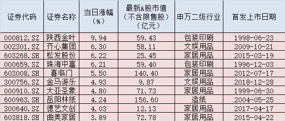 從當(dāng)日市場(chǎng)表現(xiàn)來(lái)看,中銳股份收獲一字漲停板,齊心集團(tuán)、松發(fā)股份、珠海中富、喜臨門等個(gè)股漲幅均超過(guò)5%。