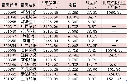 表:12月16日受到千萬元以上大單資金追捧的固廢處理概念股