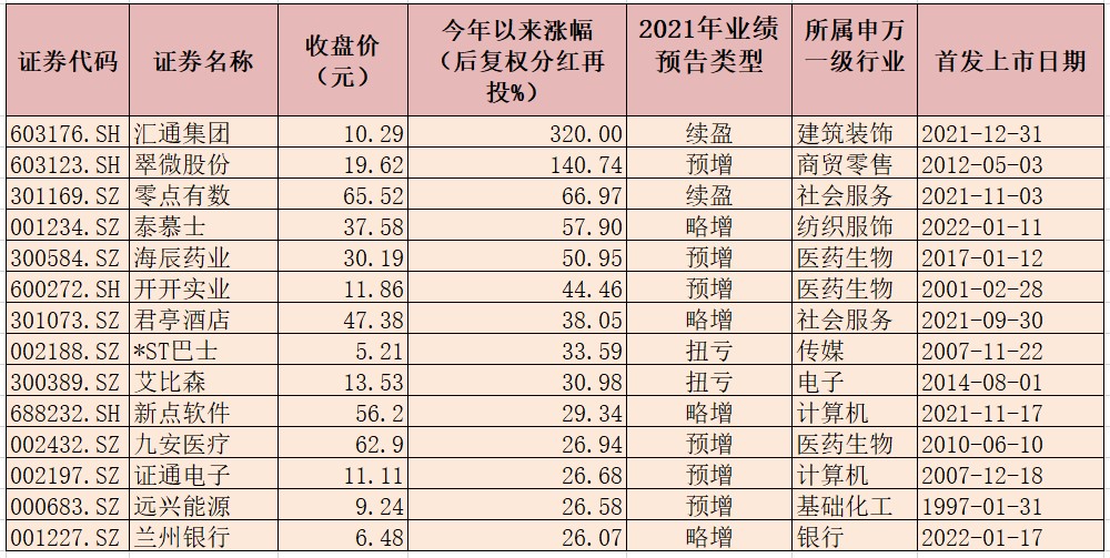 表:今年以來漲幅超26%的業(yè)績預喜股一覽
