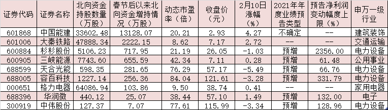 三是北向資金關(guān)注度較高。統(tǒng)計發(fā)現(xiàn),截至目前,上述9只個股全部被北向資金持倉,合計北向資金持股數(shù)量達16.08億股,較春節(jié)前的14.34億股增長1.74億股,增幅為12.13%。其中,中國能建、大秦鐵路期間最受追捧,期間北向資金增持數(shù)量分別為13128.07萬股、2222.15萬股,杉杉股份、三峽能源、天合光能、容百科技、格力電器等5只個股期間也均獲得超百萬股北向資金青睞。