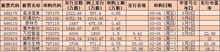 表:下周(2月28日-3月4日)8只新股申購(gòu)情況: