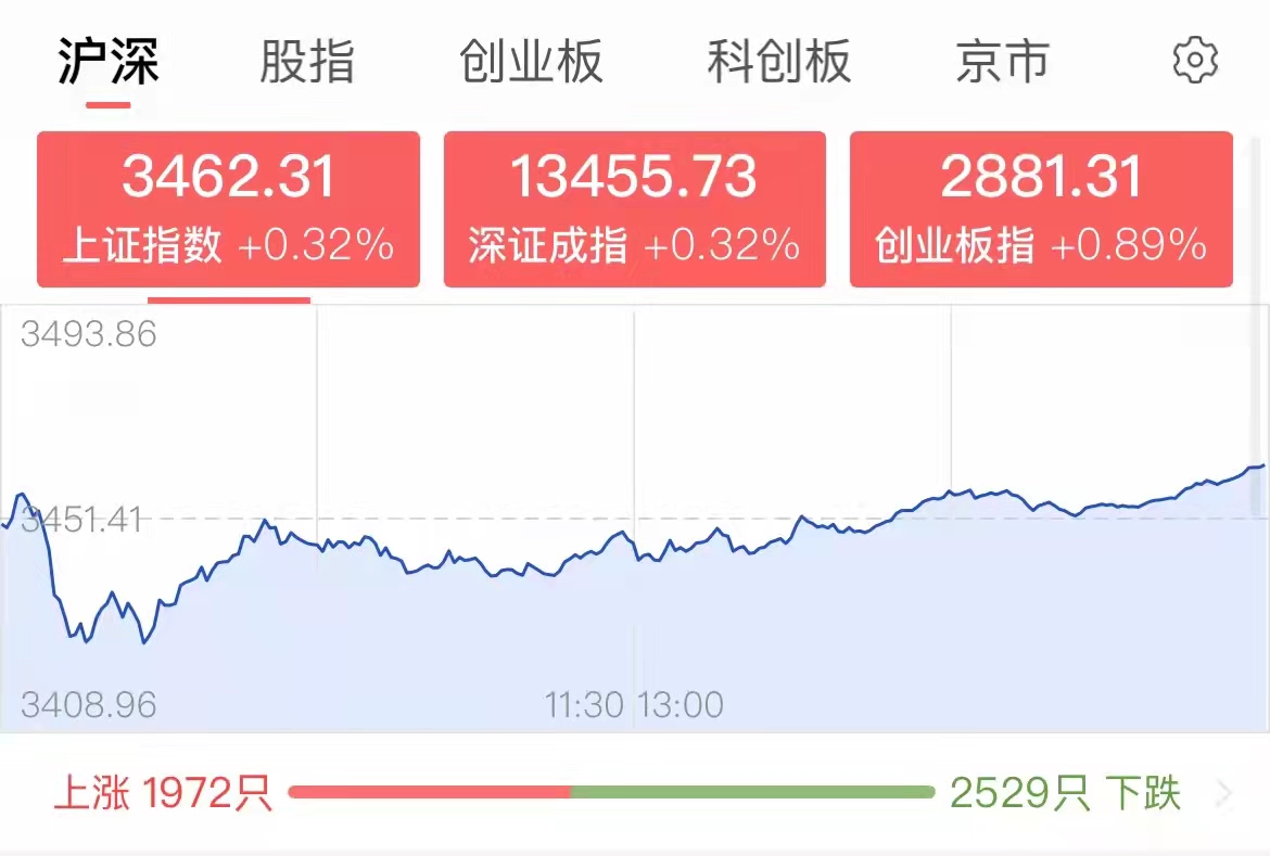 周一,A股三大指數(shù)探底回升,集體收漲,截至收盤(pán),上證指數(shù)漲0.32%,報(bào)3462.31點(diǎn);深證成指漲0.32%,報(bào)13455.73點(diǎn);創(chuàng)業(yè)板指漲0.89%,報(bào)2881.31點(diǎn);滬深兩市合計(jì)成交額9491億元;北向資金凈買(mǎi)入20.47億元;總體來(lái)看,兩市個(gè)股跌多漲少。