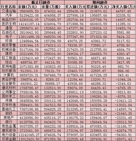 表:3月3日申萬一級行業(yè)兩融交易情況: