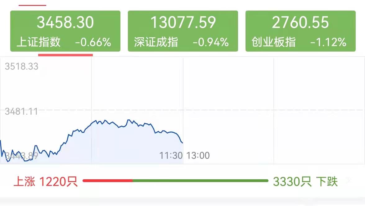 3月4日上午,A股三大指數(shù)震蕩回落,截至上午收盤,上證指數(shù)跌0.66%,報3458.3點(diǎn);深證成指和創(chuàng)業(yè)板指跌幅分別為0.94%和1.12%;滬深兩市合計成交額6119.7億元;總體來看,兩市個股跌多漲少。
