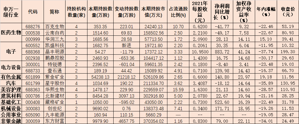 QFII持股方面,截至去年四季度末,QFII新進持有紫金礦業(yè)、凱盛科技、百克生物、九豐能源、壹石通等5只個股,新進數(shù)量分別為14103.83萬股、613.87萬股、138.01萬股、78.14萬股和44.42萬股;北新建材、華熙生物、華潤三九、云南白藥、鵬鼎控股等5只個股在去年四季度獲QFII繼續(xù)加倉操作,增持?jǐn)?shù)量分別為2615.00萬股、259.90萬股、37.58萬股、29.04萬股和6.62萬股。