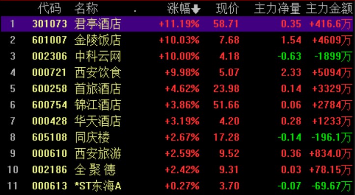酒店及餐飲板塊開盤后持續(xù)拉升,板塊內(nèi)個(gè)股全部實(shí)現(xiàn)上漲,其中,金陵飯店、中科云網(wǎng)、西安飲食集體漲停。