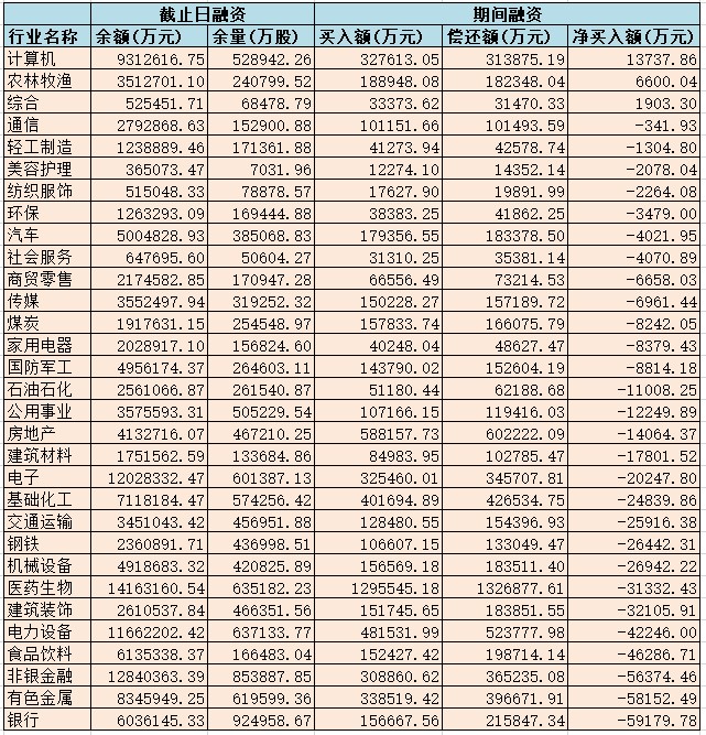 表:3月31日申萬一級(jí)行業(yè)兩融交易情況: