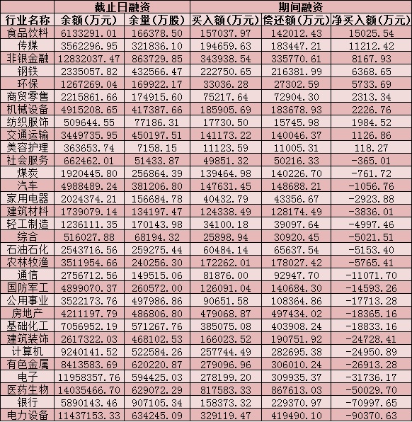 表:4月8日申萬一級(jí)行業(yè)兩融交易情況: