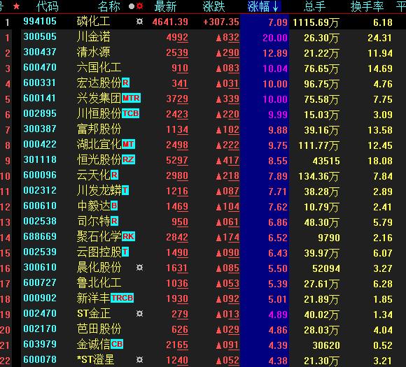 具體來看,4月8日,磷化工板塊異軍突起,表現(xiàn)強(qiáng)勁。截至上午收盤,板塊漲幅居首達(dá)7.09%。4只概念股集體漲停,其中,川金諾20CM漲停。
