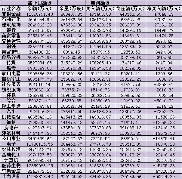 表:4月12日申萬(wàn)一級(jí)行業(yè)兩融交易情況: