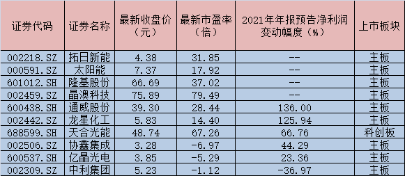 圖為:部分太陽能電池個(gè)股市場(chǎng)面一覽 制表:徐一鳴