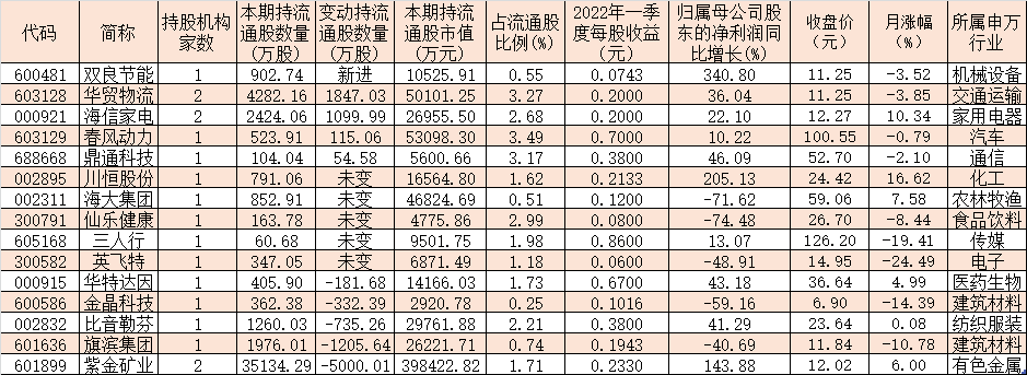 表:一季度獲社?;鸪謧}的個股一覽