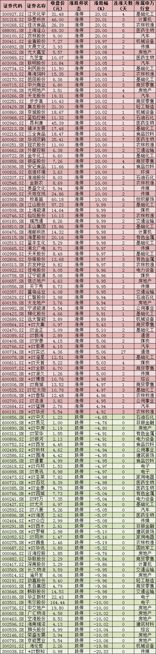 個股方面,周二,A股市場漲多跌少,共有2685只個股實現(xiàn)上漲,1870只個股下跌。其中,有74只個股報收于漲停板,跌停個股有44只。從所屬行業(yè)來看,漲停個股主要集中在化工、農(nóng)林牧漁、傳媒、商貿零售、醫(yī)藥生物等行業(yè)。