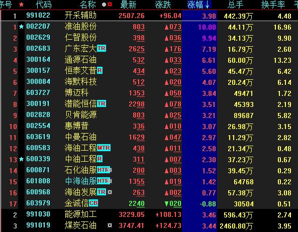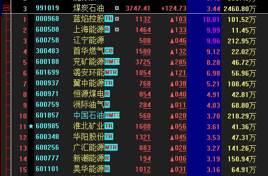 熱點一:開采輔助攜手煤炭石油板塊上漲5股漲停