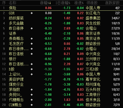 熱點(diǎn):保險(xiǎn)成唯一上漲板塊