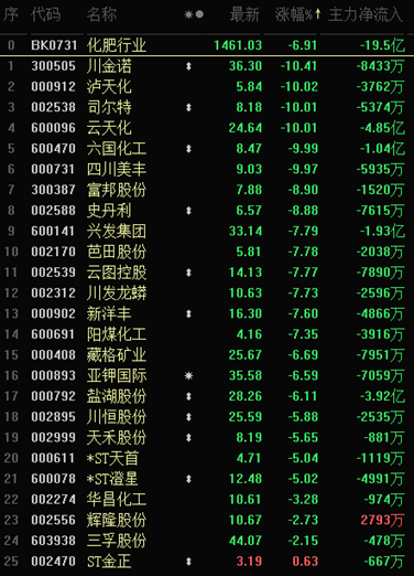 冰點(diǎn):化肥板塊下跌6.91%