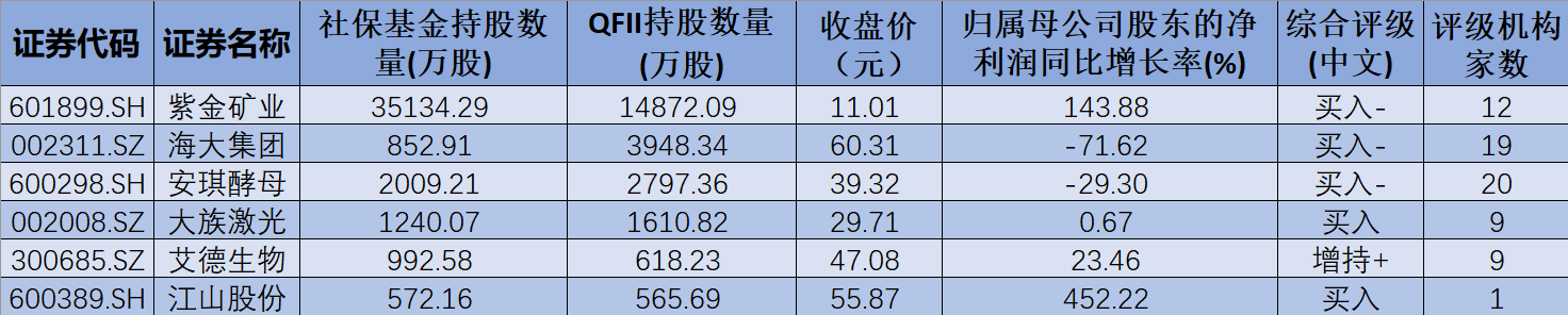 值得注意的是,在上述社?;鸪钟械?7只個(gè)股中,有6只個(gè)股也同時(shí)獲得QFII的持倉(cāng)。截至2022年一季度末,紫金礦業(yè)獲得QFII持倉(cāng)量最大,達(dá)到14872.09萬(wàn)股;此外,包括海大集團(tuán)、安琪酵母、大族激光等在內(nèi)的3只個(gè)股獲得QFII持倉(cāng)量也超過(guò)1000萬(wàn)股。