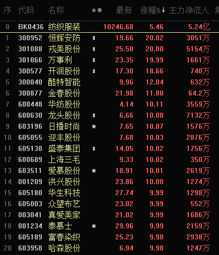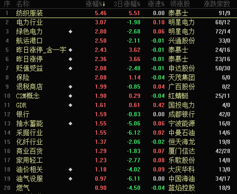 熱點(diǎn):紡織服裝領(lǐng)漲漲幅達(dá)5.46%