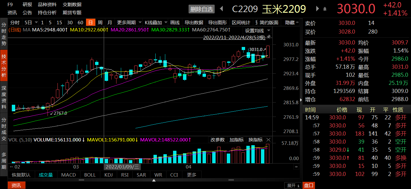 對此,東吳期貨農(nóng)產(chǎn)品研究員王俊棠告訴《證券日報》記者:“主要有三大因素推升了美國玉米期貨的價格。首先,地緣政治因素影響全球農(nóng)產(chǎn)品供應(yīng),導(dǎo)致市場預(yù)期玉米供應(yīng)偏緊;其次,美國政府近期宣布,受全球能源價格上漲影響,將擴(kuò)大使用乙醇混合汽油。為此,美國環(huán)境保護(hù)署已允許在6月1日至9月15日期間銷售混合15%乙醇的汽油,這直接增加了美國對玉米制乙醇的需求;最后,由于玉米相較于大豆的化肥使用量更高,受化肥價格持續(xù)上漲影響,美國已積極擴(kuò)種大豆,并減少了玉米的種植面積,這也降低了美國玉米的供應(yīng)量,致使玉米期貨價格持續(xù)上漲。”