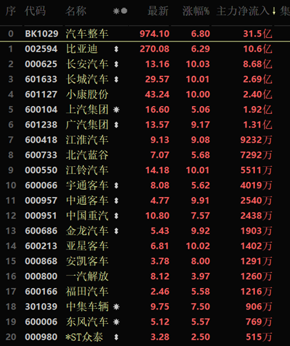 從個股資金流向來看,汽車整車行業(yè)的23只個股中,有21只呈現(xiàn)大單資金凈流入,其中,包括比亞迪、長安汽車和長城汽車等在內的6只個股大單資金凈流入均超1億元。