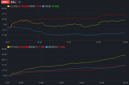 北向資金今日呈凈流入態(tài)勢,全天凈買入20.79億元,其中,滬股通凈買入31.71億元,深股通凈賣出-10.93億元。