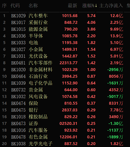 從領(lǐng)漲的汽車整車行業(yè)看,截至5月17日11:30,行業(yè)中有4只個(gè)股封漲停板。