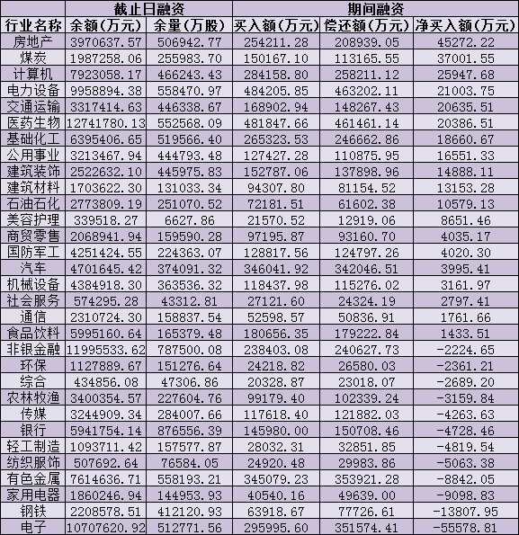 表:5月18日申萬一級行業(yè)兩融交易情況: