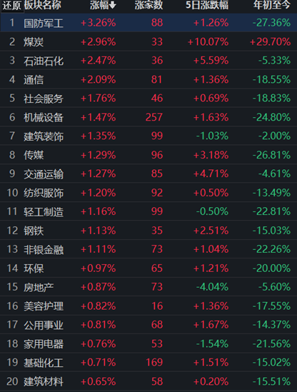 從申萬一級行業(yè)看,國防軍工行業(yè)指數(shù)收報1437.03點,漲幅達3.26%,居申萬行業(yè)首位。