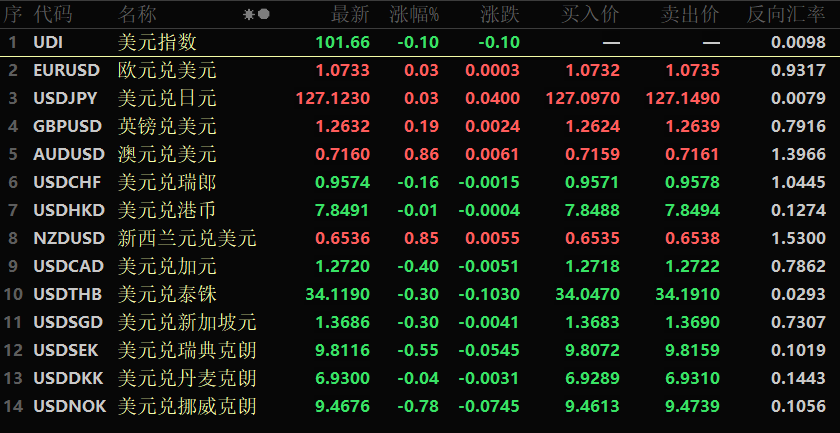美元指數(shù)5月27日下跌,截至紐約匯市尾盤,衡量美元對六種主要貨幣的美元指數(shù)下跌0.16%至101.6670。