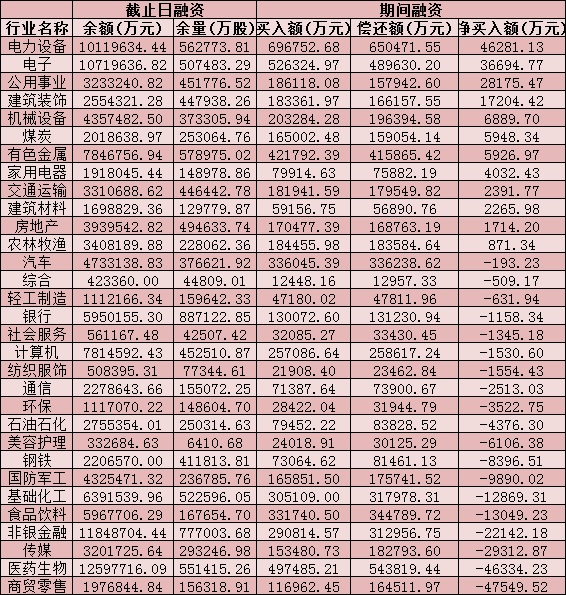 表:5月31日申萬一級(jí)行業(yè)兩融交易情況: