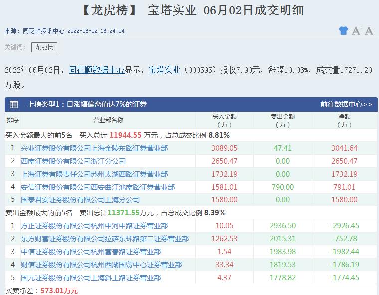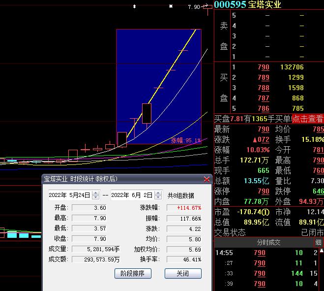6月2日,寶塔實(shí)業(yè)再度漲停,截至收盤(pán),報(bào)7.9元,實(shí)現(xiàn)8連板,期間累計(jì)漲達(dá)114.67%,最新總市值達(dá)89.95億元。