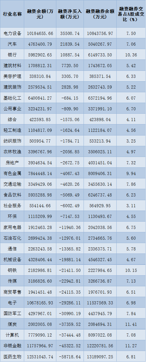 表:6月2日申萬一級行業(yè)兩融交易情況: