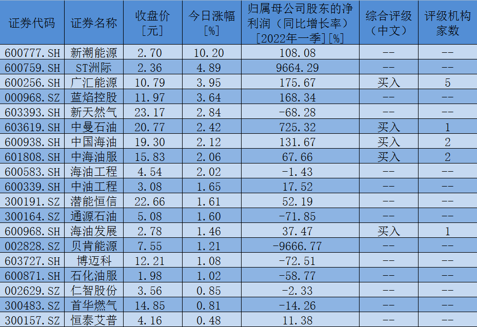 表:6月8日,油氣開(kāi)采及服務(wù)板塊實(shí)現(xiàn)上漲個(gè)股一覽