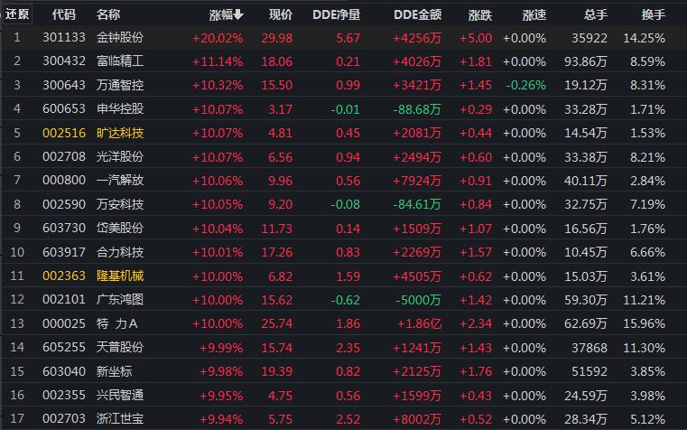 18只汽車股集體漲停