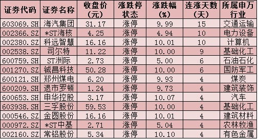 海汽集團(tuán)10連板飆升近160%