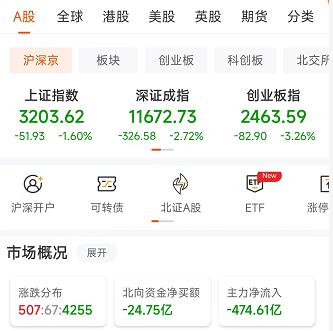 6月14日上午,A股三大指數(shù)集體低開(kāi)低走,創(chuàng)業(yè)板指數(shù)跌超3%。截至上午11:30,上證指數(shù)跌1.6%,報(bào)3203.62點(diǎn);深證成指跌2.72%,報(bào)11672.73點(diǎn),創(chuàng)業(yè)板指跌3.26%,報(bào)2463.59點(diǎn);滬深兩市合計(jì)成交額6677億元;總體來(lái)看,A股市場(chǎng)個(gè)股跌多漲少,上漲個(gè)股為507只,下跌個(gè)股4255只。