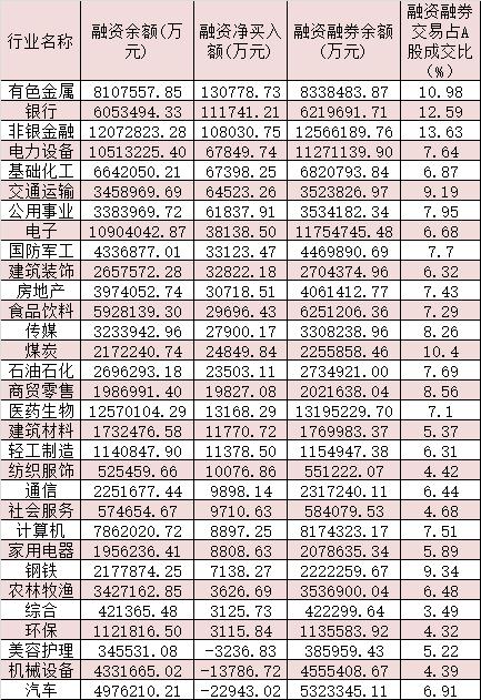 表:6月13日申萬(wàn)一級(jí)行業(yè)兩融交易情況: