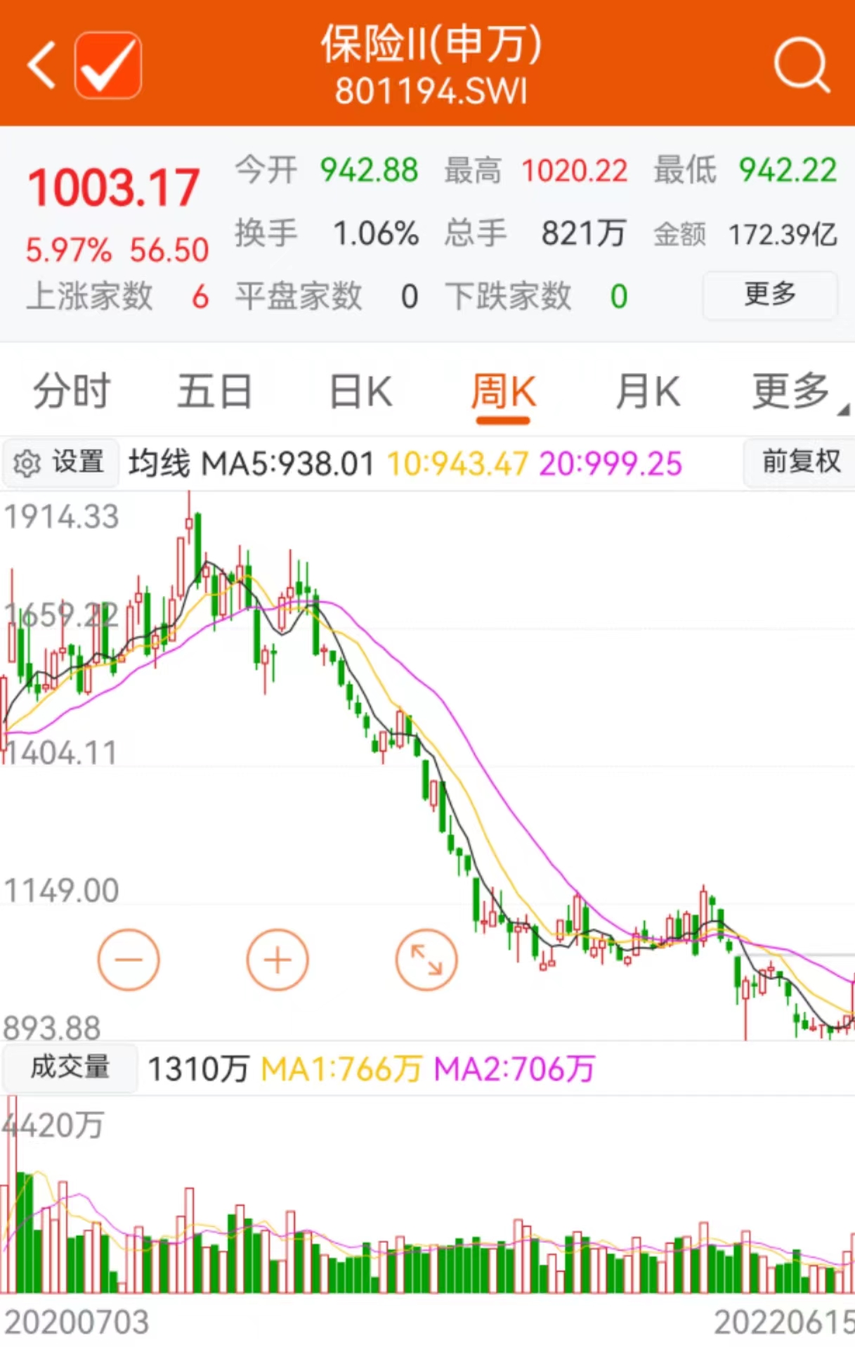 6月15日保險(xiǎn)板塊(申萬二級行業(yè)分類)出現(xiàn)久違大漲,漲幅達(dá)5.97%,位列A股各行業(yè)板塊第一,一掃去年以來持續(xù)低迷的陰霾。
