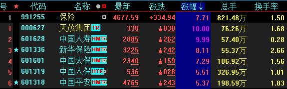 6月15日,保險(xiǎn)板塊表現(xiàn)搶眼,漲幅居首達(dá)7.71%。其中,天茂集團(tuán)、中國(guó)人壽等2只個(gè)股攜手漲停。新華保險(xiǎn)、中國(guó)太保等2只個(gè)股漲幅超7%。