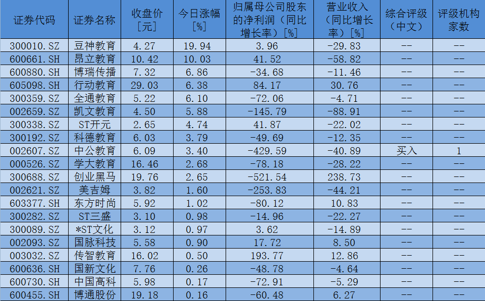 表:6月15日,教育板塊實現(xiàn)上漲個股一覽