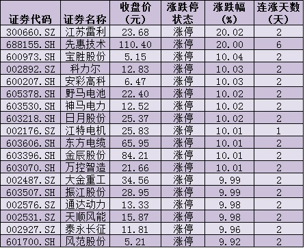 6月17日,電力設(shè)備行業(yè)漲幅居首,達(dá)3.81%。其中,江蘇雷利、先惠技術(shù)、寶勝股份、科力爾、安彩高科、野馬電池、神馬電力、日月股份、江特電機(jī)、東方電纜、金辰股份、萬控智造、大金重工、振江股份、通達(dá)動力、天順風(fēng)能、泰永長征、風(fēng)范股份等18概念股集體漲停。
